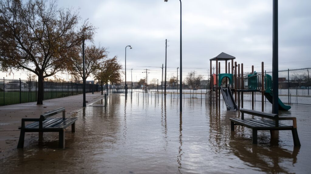 • Surface water drainage causing flooded playgrounds during heavy rainfall